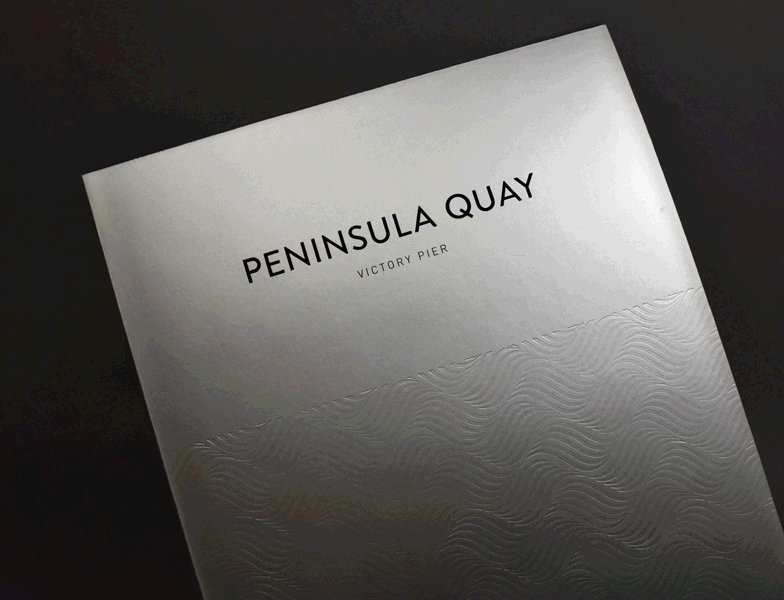 We designed and printed beautiful lay-flat brochures that presented the imagery and CGIs in the best possible light. On the covers we used holographic foil to pick out the line designs and copper foil for the development name. The hoarding used a combination of techniques to achieve the desired effect including built-up acrylic lettering, coloured LEDs and copper vinyl. We also produced press advertisements, launch invitations, local area guides, marketing suite graphics, signage, flags and signage.